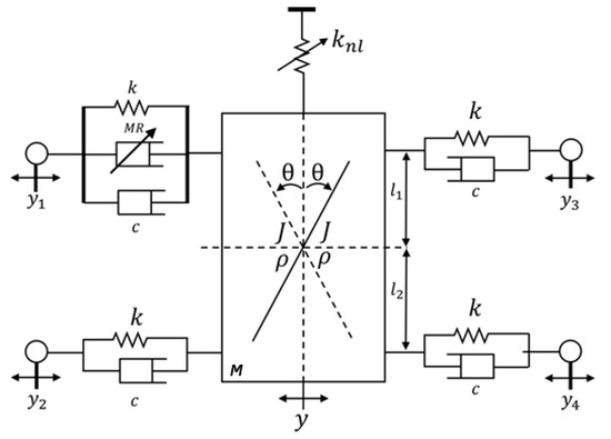 - Kim, K.; Jeon, D. Vibration Suppression in an MR Fluid Damper Suspension System. J. Intell. Mater. Syst. Struct. 1999, 10, 779–786. [Google Scholar] [CrossRef]