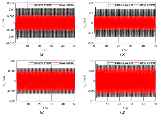 3.2. Numerical Simulations for the System with Active Control
