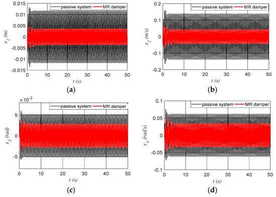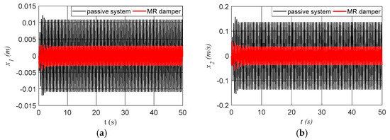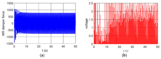3.3. Numerical Simulations for the System with Semi-Active Control by an MR Damper