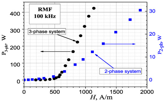An additional advantage of an RMF is its higher efficiency compared to the properties of alternating magnetic fields (AMF) [12,13,14,15,16]. This article compares the performance of two RMF generation methods: a two-phase device [15,16] and a three-phase device [14,17].