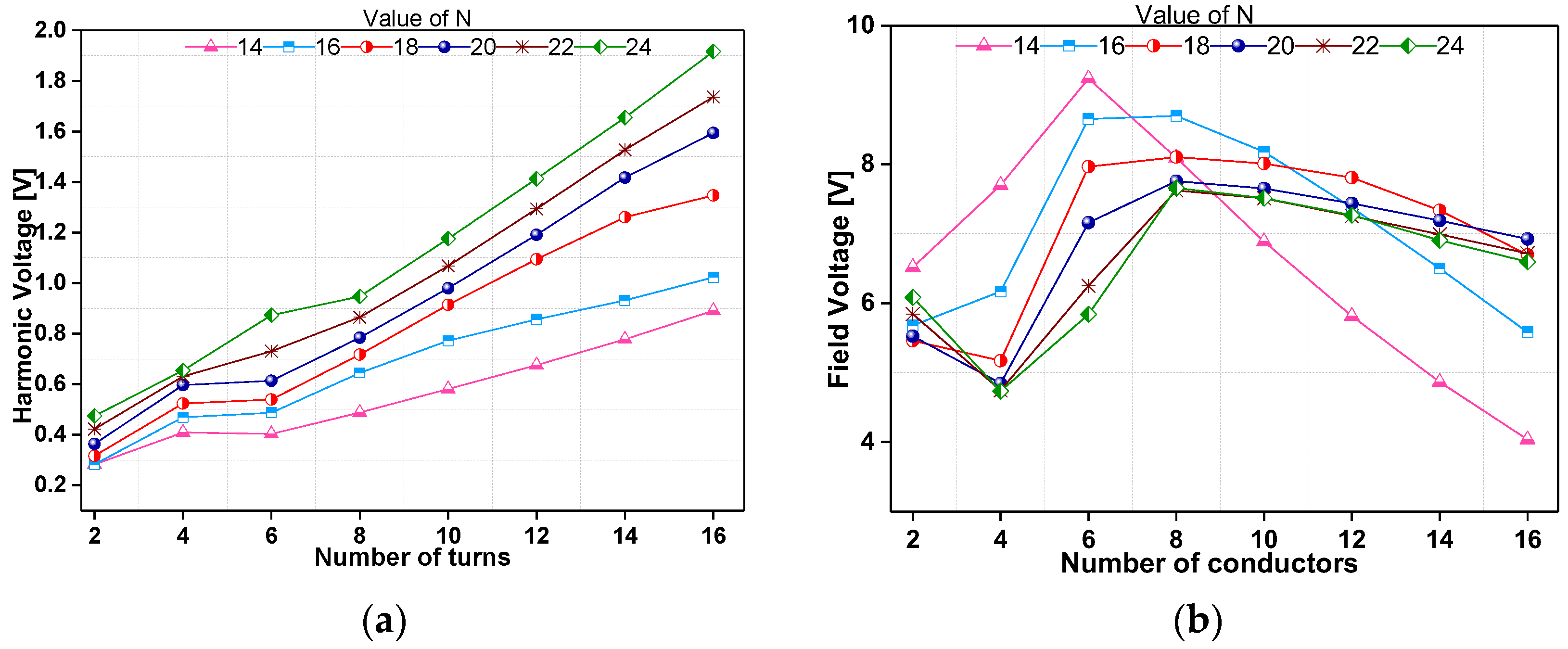 3.2. Turn Variations in Harmonic Winding with the Same Number of Armature Winding Turns