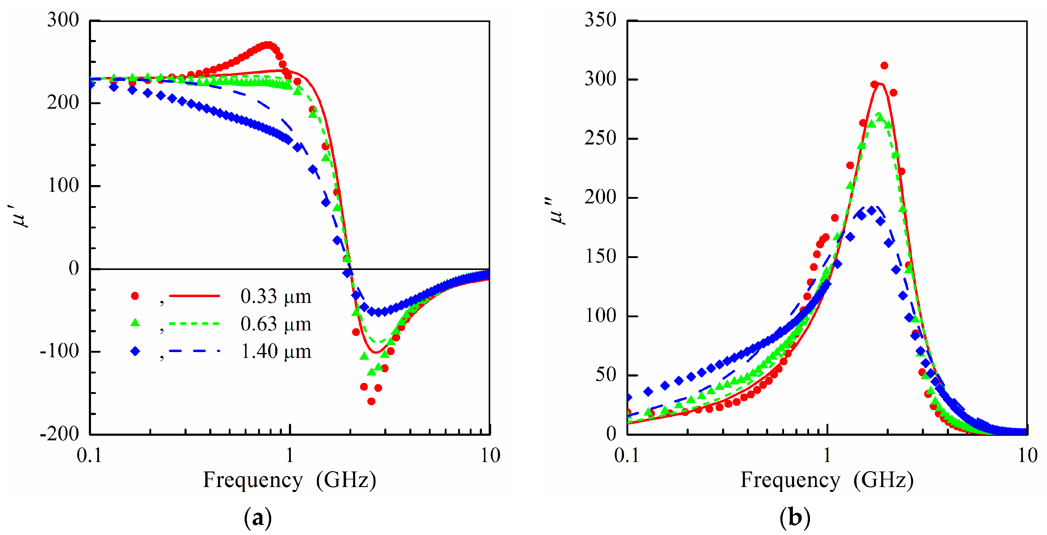 - Yabukami, S.; Nozawa, K.; Tonthat, L.; Okita, K.; Sai, R. Impact of complex permeability measurements up to millimeter-wave frequency range. IEEE Trans. Magn. 2021, 57, 6100405. [Google Scholar] [CrossRef]