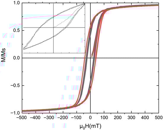 - Herzer, G. Anisotropies in soft magnetic nanocrystalline alloys. J. Magn. Magn. Mater. 2005, 294, 99. [Google Scholar] [CrossRef]