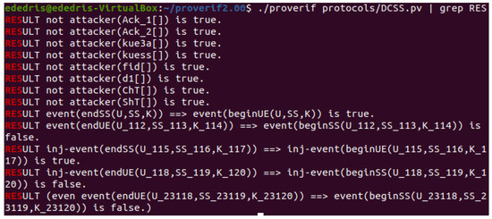 - Unknown-Key Share: ProVerif uses the reachability property to check aliveness in a protocol. This attack is prevented by the entities’ IDs and key binding. This requirement is demonstrated by the inclusion of IDs (, ), and access token parameters; in the authorization process.