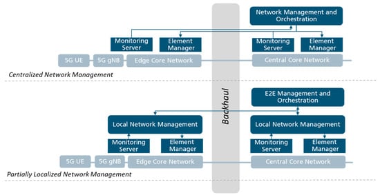 Based on the quality of the backhaul, the appropriate network management solution should be chosen. Specifically, for nomadic or mobile use cases where high reliability is needed and autonomous edge nodes are deployed, a distributed solution is highly appropriate. For the other situations, the centralized split of the network management can be considered if the delay of the procedures and the potential loss of communication are considered. However, the distributed network management would be the best alternative in most of the cases as it can immediately and locally respond to the different requirements provided that a properly dimensioned solution is developed addressing such edge network deployments and not directly porting the wide area network operators’ ones.