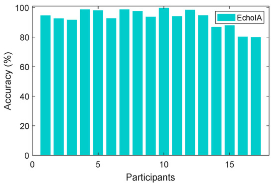 To compare EchoIA with other state-of-the-art IA schemes [22], we implemented Shi-IA [6], Multi-Sensor-IA [11], Gait-IA [19], and SilentSense-IA [20]. We used the recommended settings of the original papers [6,11,19,20] in the experiment. In addition, the feature selection strictly follows the descriptions of the original works, while the parameters were optimized by using k-fold cross-validation. Finally, we tested the performance of different schemes by using the same data.