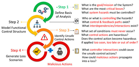 Next, each control action for each controller is evaluated in the context of the various system and environmental states that the system is subject to, in order to identify hazardous control actions. Finally, loss scenarios are generated by hypothesizing how the interaction between the controllers, flaws within the system and missing constraints can be leveraged by an attacker to cause system-level losses. Countermeasures are then derived to prevent the hazards from propagating into system-level losses.