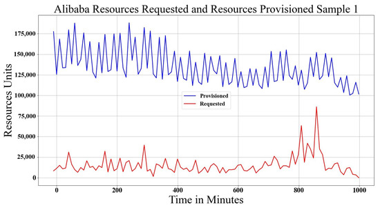 Alibaba data center Provisioned and Requested Resources, Sample 1.