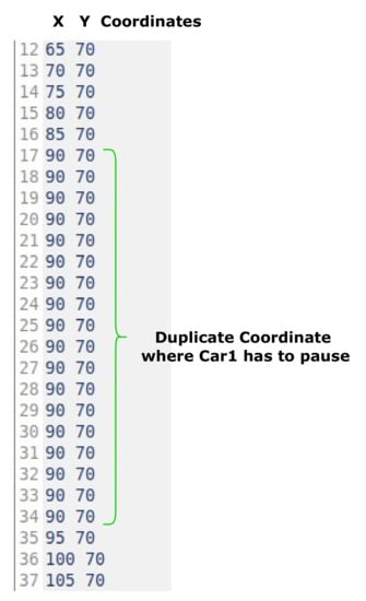 Listing 10. SUMO Integration with Mininet–WiFi. info(‘ ‘∗∗∗∗Starting_network_and_connecting_to_traci’ ’) info(’Connecting_to_traci_sumo’) net.useExternalProgram (program=sumo, port=8813, config_file=’osm.sumocfg’, extra_params=[‘ ‘--start --delay 1500’ ’]) After running the script SUMO_Aug17.py, network emulation with the SUMO map as shown in Figure 43 will be generated. Figure 47 shows the location of the assigned access points and the movement of cars and trams, where assigned access points are ap1 to ap17, C2 represents Car2, and T77 represents Tram77. When a car/tram moves from the coverage range of one access point to another, we sometimes observe that there is no automatic connection to the nearest access point. In that case, the connection can be established using the command <node name> iw dev <node name>-wlan0 connect <SSID name>.