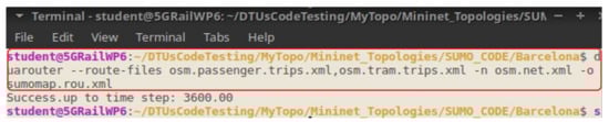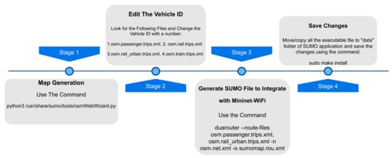 In this section, a detailed description of SUMO integration with Mininet–WiFi is given to showcase the graphical representation of railway and road coexistence scenarios. Figure 39 shows the steps to generate the SUMO map from open street map and integration with Mininet–WiFi.