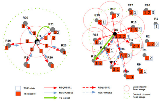 Our DTS-AC protocol incorporates a notification system to facilitate communication between readers through a designated control channel (Figure 2). We utilize the two distinct control channels to efficiently manage resource allocation.