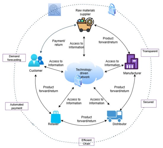 Efficient information flow sustains SCM operations [46]. Blockchain technology enables secure, real-time, and immutable data sharing among participants. Moreover, smart contracts and IoT integration improve reporting, early detection of problems, and stakeholder cooperation.
