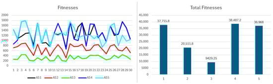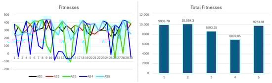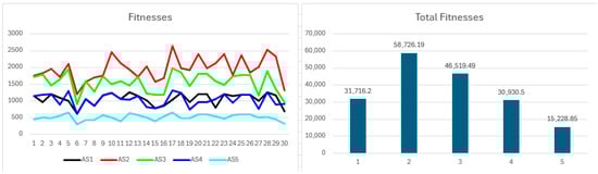 Figure 8 presents fitness values, showing minor variations where participants with equal coalition payoffs differ according to their solo payoffs. Consistently high fitness confirms the superiority of cooperative benefits compared to the variability in solo outcomes. Cumulative fitness aligns closely with payoffs and resource contributions, with minimal variation among equal-resource participants, primarily driven by differences in solo payoff consistency and magnitude.