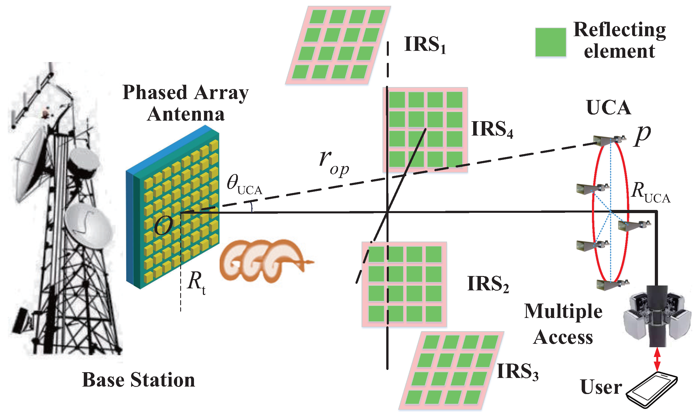 2.2. Capacity Optimization of OAM System with IRS