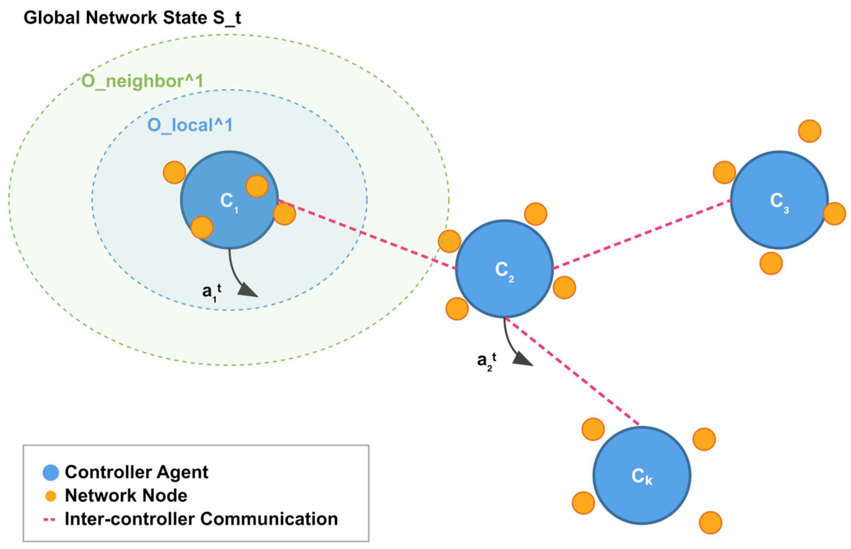 - Inter-Controller Latency (ICL): measures coordination overhead between controllers, directly affecting the system’s ability to maintain consistent network state and implement coordinated policies, as in (10):