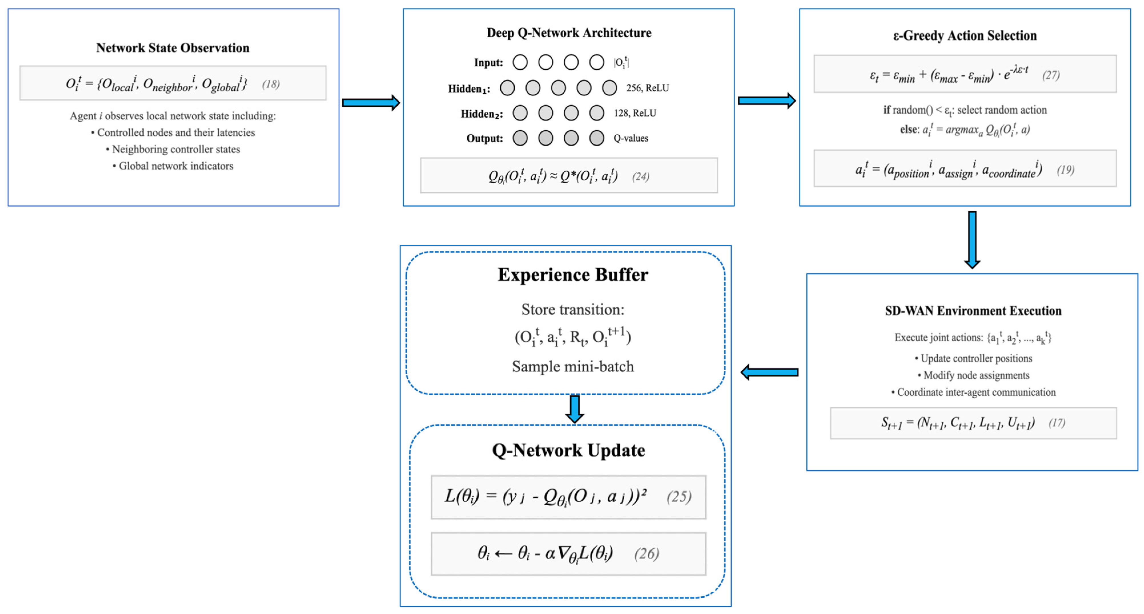 | Algorithm 2 MARL-Based Dynamic Controller Placement for SD-WANs |