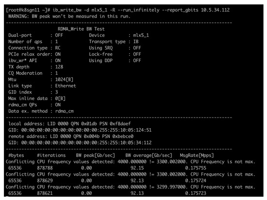 Bandwidth testing result for RDMA Write.