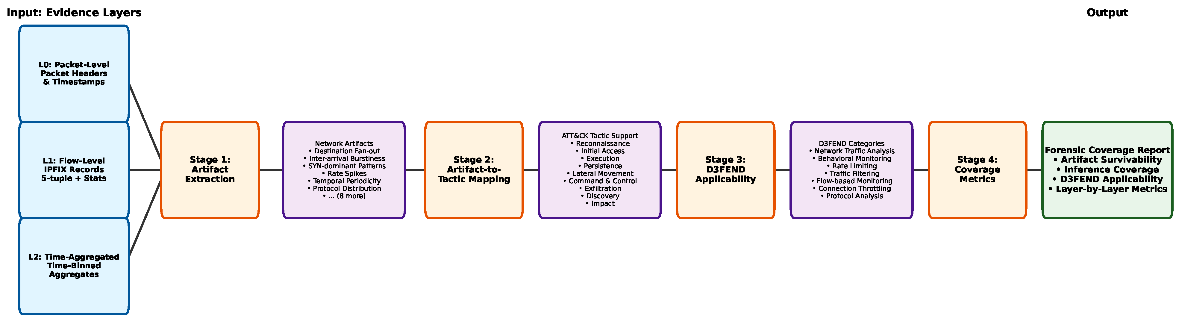 High-Stakes Scenarios: When forensic defensibility is critical (e.g., legal proceedings, compliance audits), practitioners should treat precision-degraded artifacts as non-supportable to maintain conservative reasoning. For example, if entity-linked periodicity at L1 is affected by flow timeout splitting, practitioners should not rely on it for Persistence inference in legal contexts.