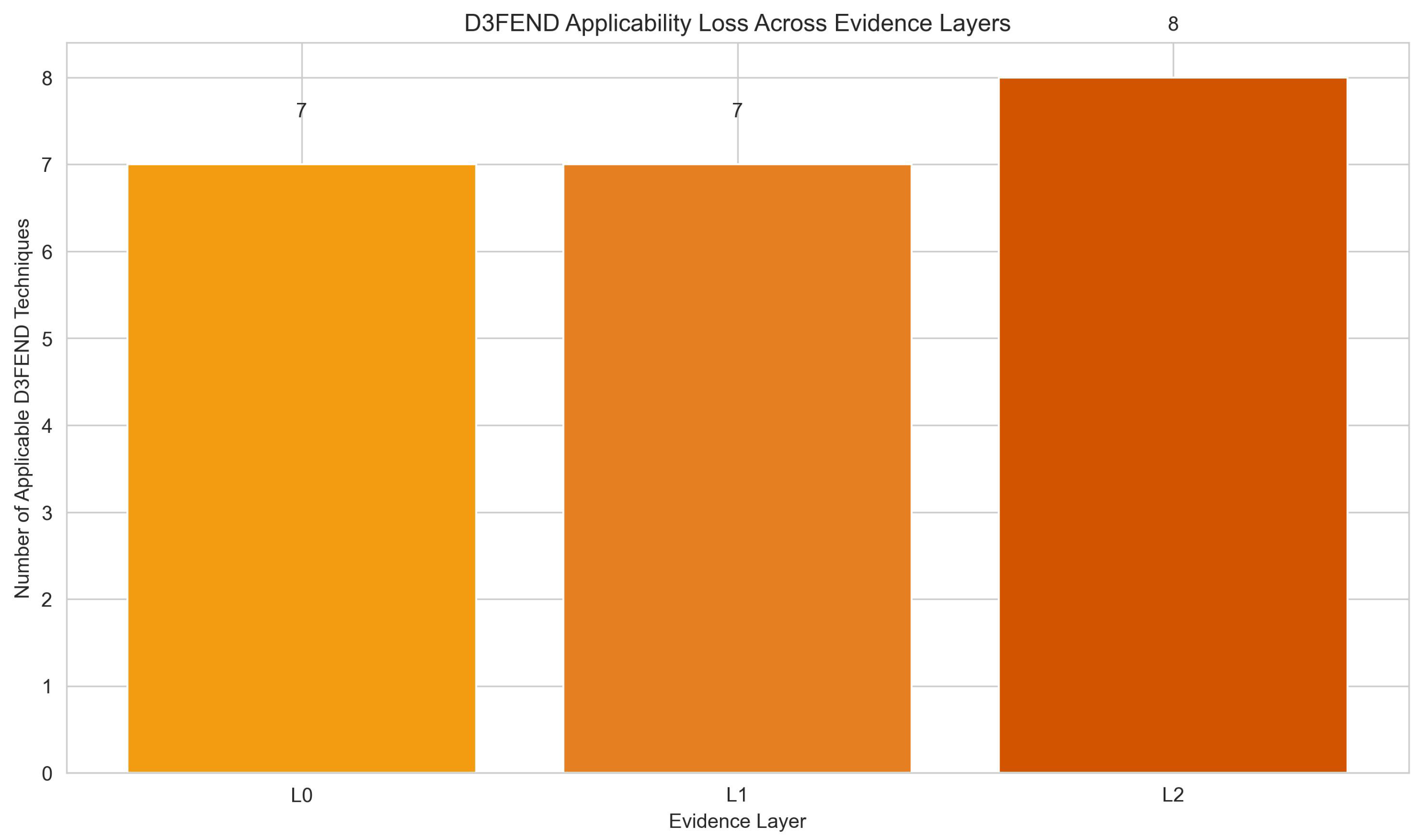 Defensive Applicability: Number of enabled D3FEND techniques (L0: 7, L1: 8, L2: 7).