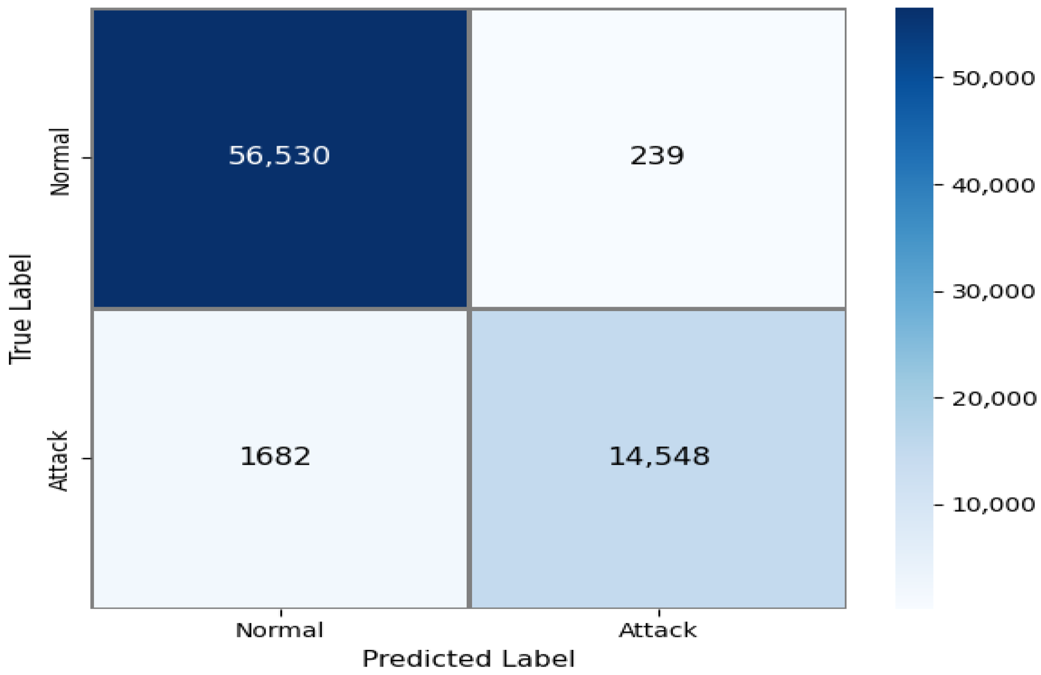Figure 2 shows minimal off-diagonal entries, indicating limited misclassification between attack classes, which is critical for maintaining operational security.