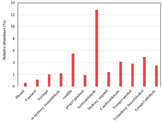 Relative abundance of phenolic monomers from pine sawdust lignin.