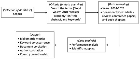This study conducted a systematic bibliometric analysis of the literature on food waste and the circular economy. The methodology involved five steps (Figure 1).