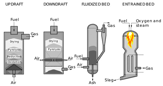 In the small power range (100 kW to 10 MW fuel thermal output), primarily fixed-bed gasifiers are used, in the medium power range (5–100 MW) fluidized bed gasifiers are predominately employed, and in the large power range (>100 MW) entrained flow gasifiers are utilized [7].