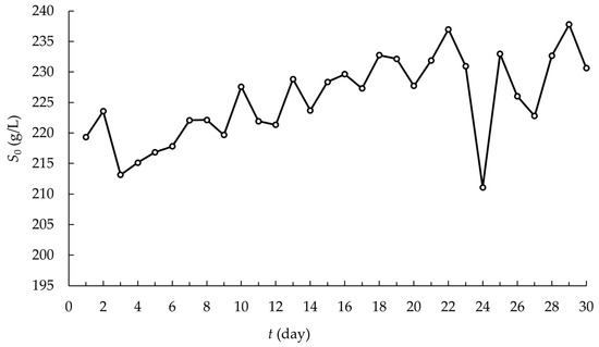 Daily substrate concentration in the fermentation system feed stream (S0).