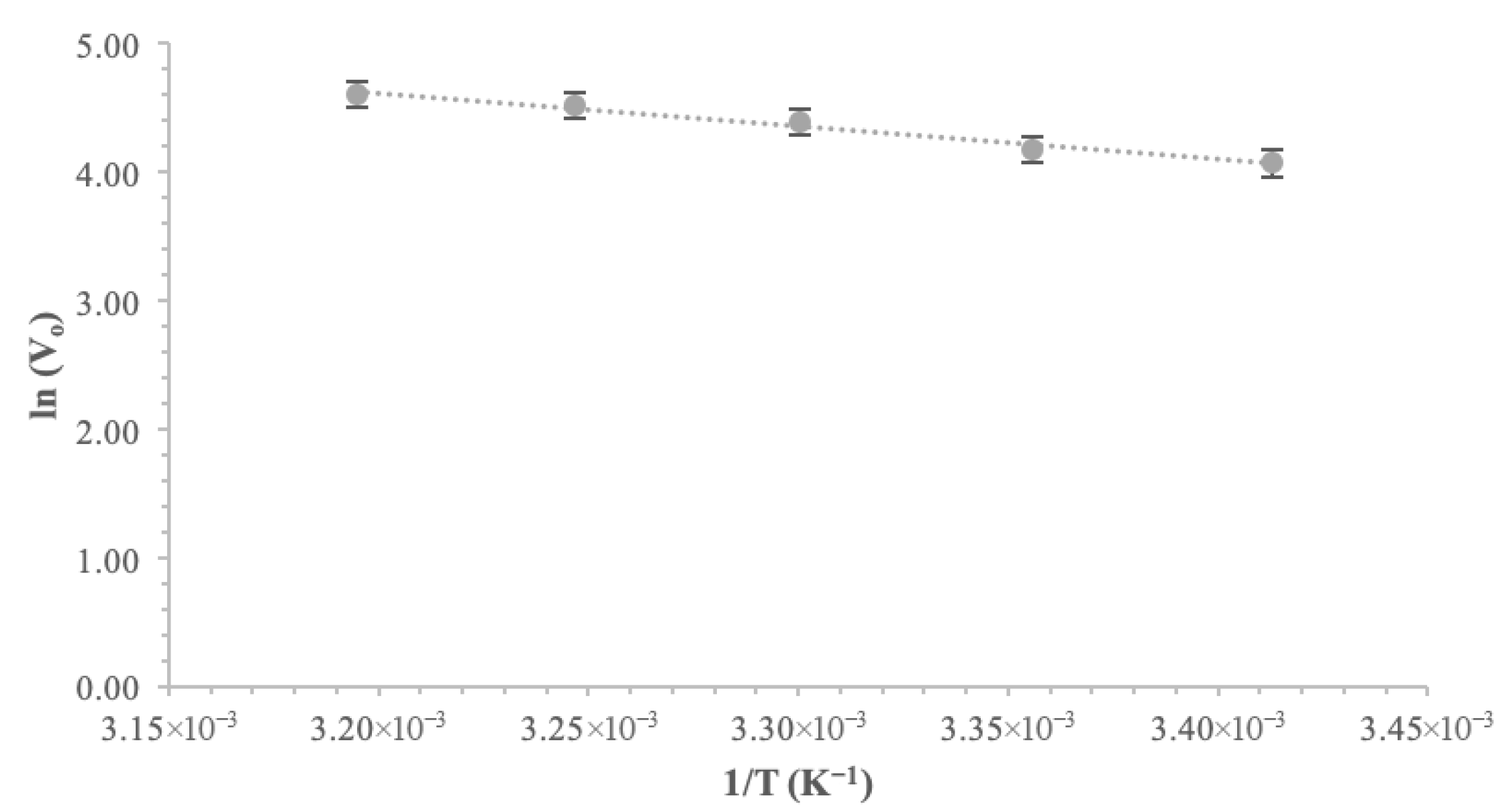 Deactivation rate constants (kd values) were estimated using non-linear regression analysis. The thermal deactivation energy was derived from the slope of the Arrhenius plot line, that is, the semi-log plot of lnkd versus 1/T, where kd values represent the deactivation rate constants.