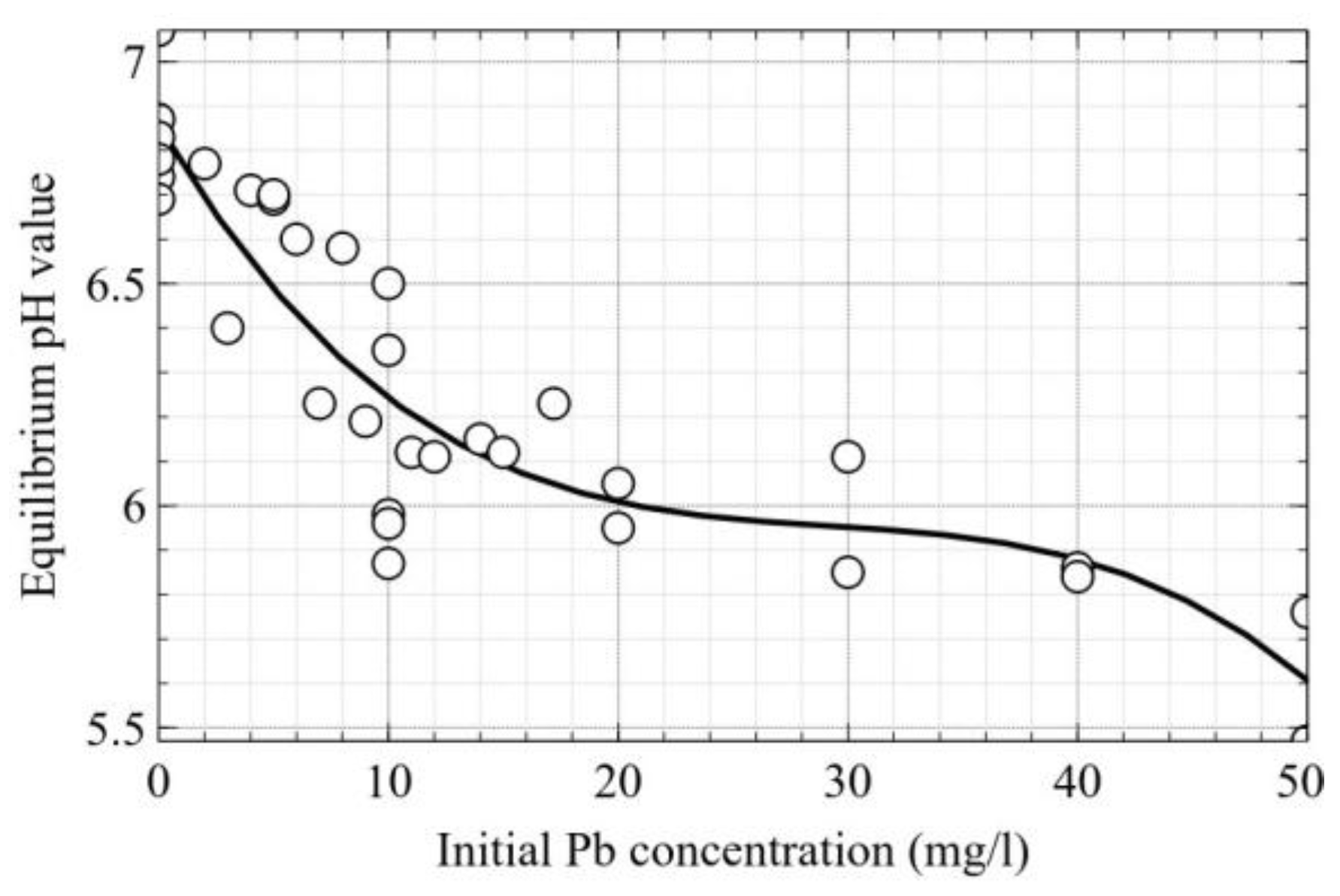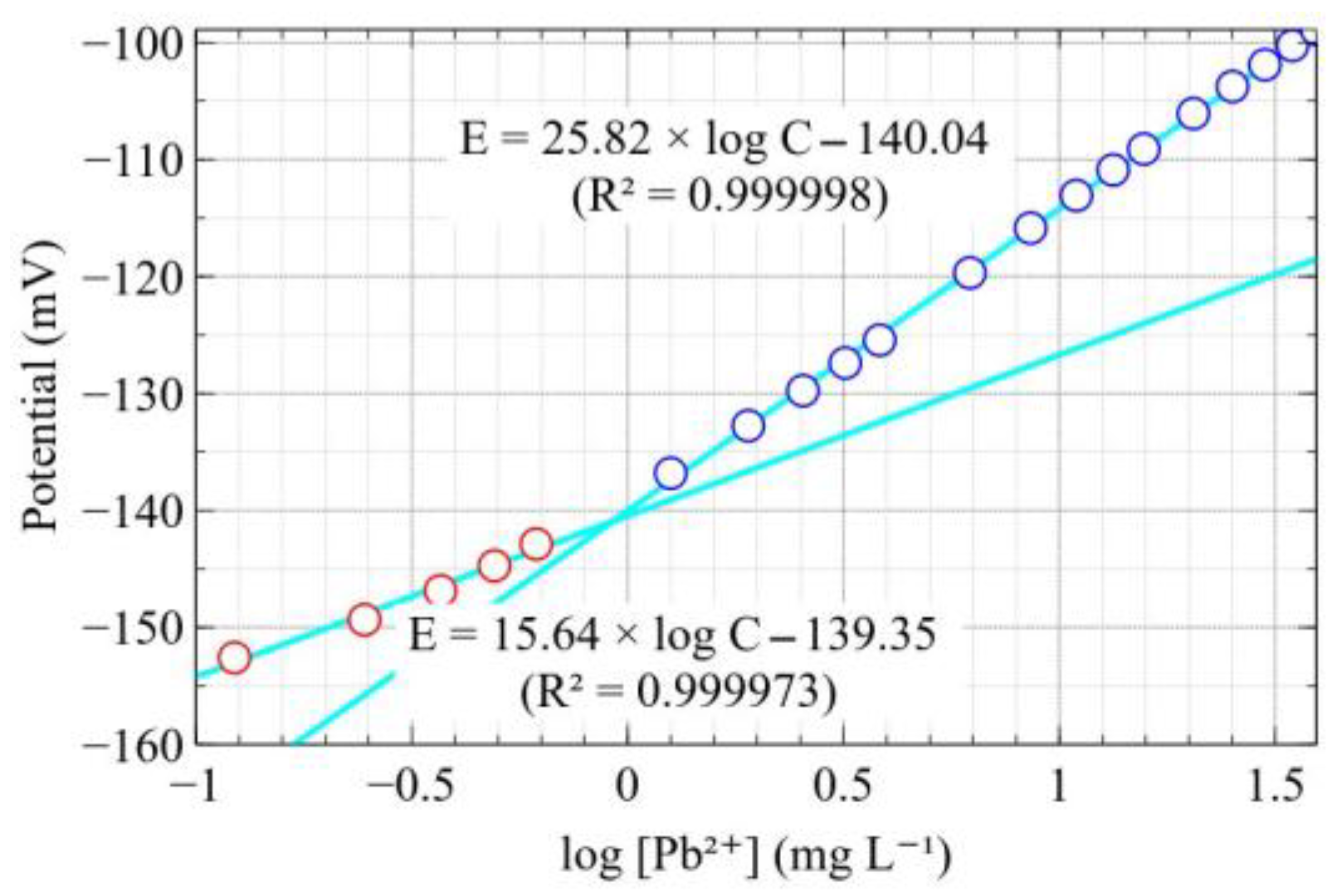2.3.1. Determination of Equilibrium Lead Concentrations by Potentiometric Method