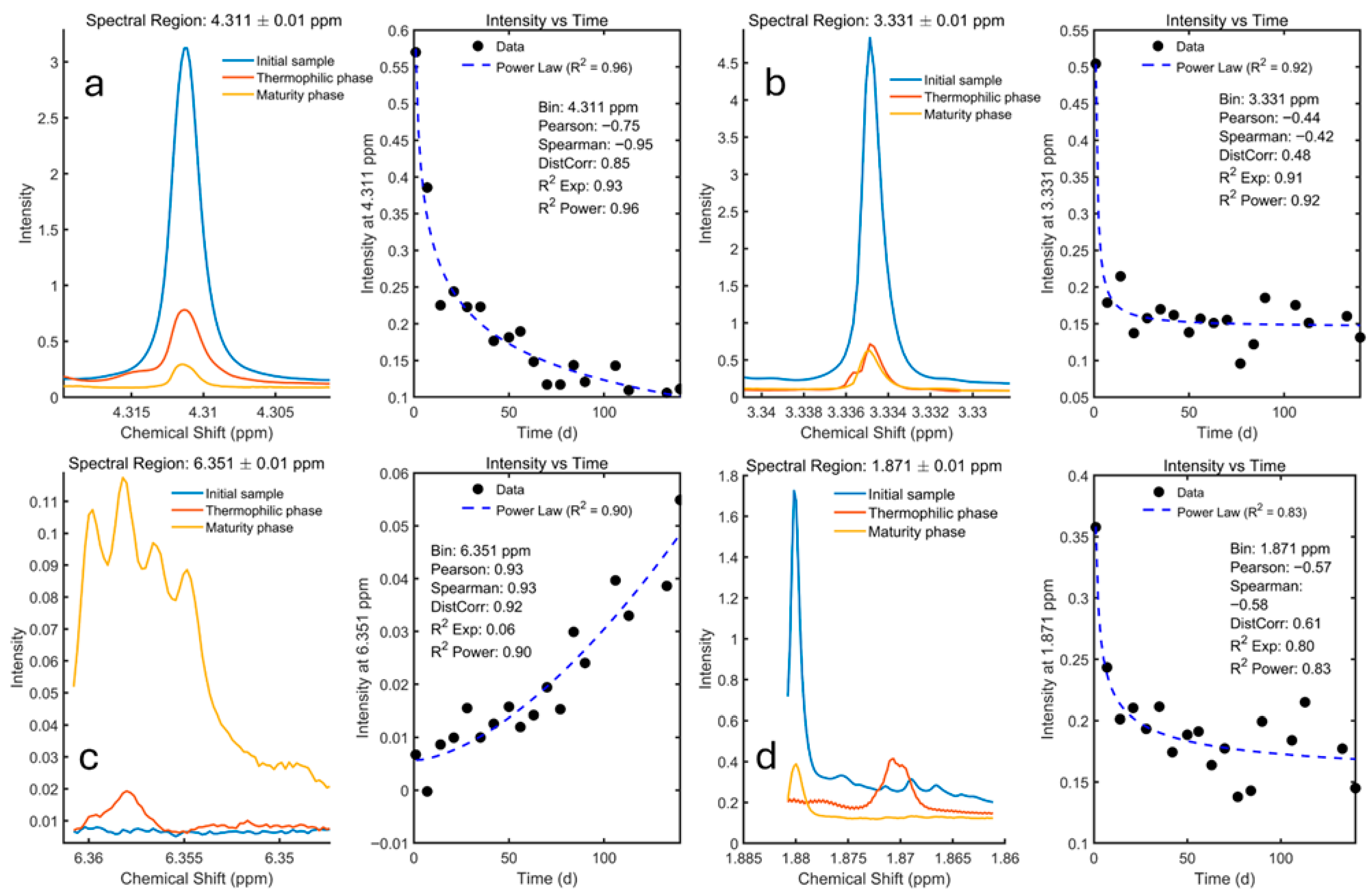 - Caricasole, P.; Provenzano, M.R.; Hatcher, P.G.; Senesi, N.; Brunetti, G. Composting of municipal solid wastes: Characterization of organic matter by CPMAS 13C NMR spectroscopy. Bioresour. Technol. 2010, 101, 823–829. [Google Scholar] [CrossRef]