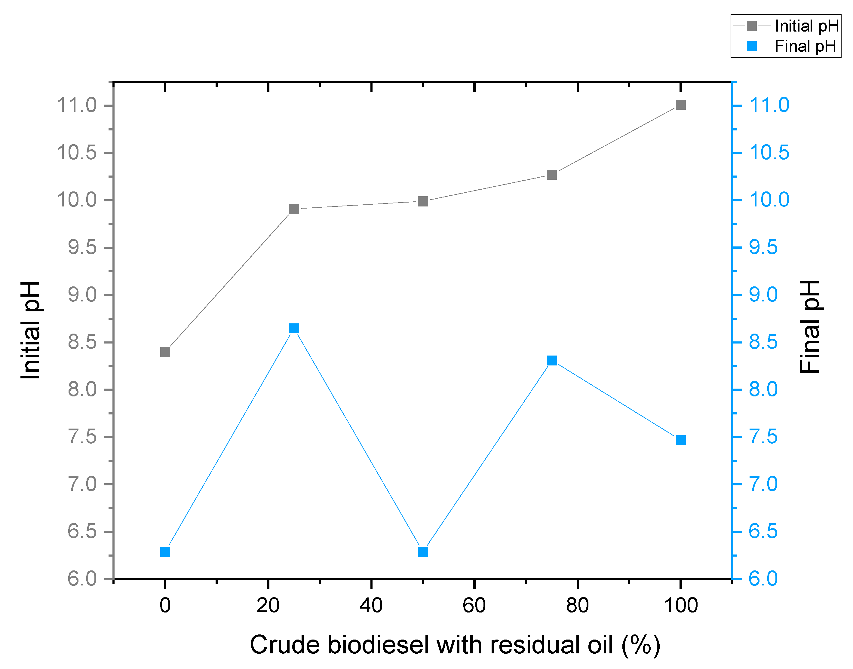 - Clark, W.M.; Medeiros, N.J.; Boyd, D.J.; Snell, J.R. Biodiesel transesterification kinetics monitored by pH measurement. Bioresour. Technol. 2013, 136, 771–774. [Google Scholar] [CrossRef]