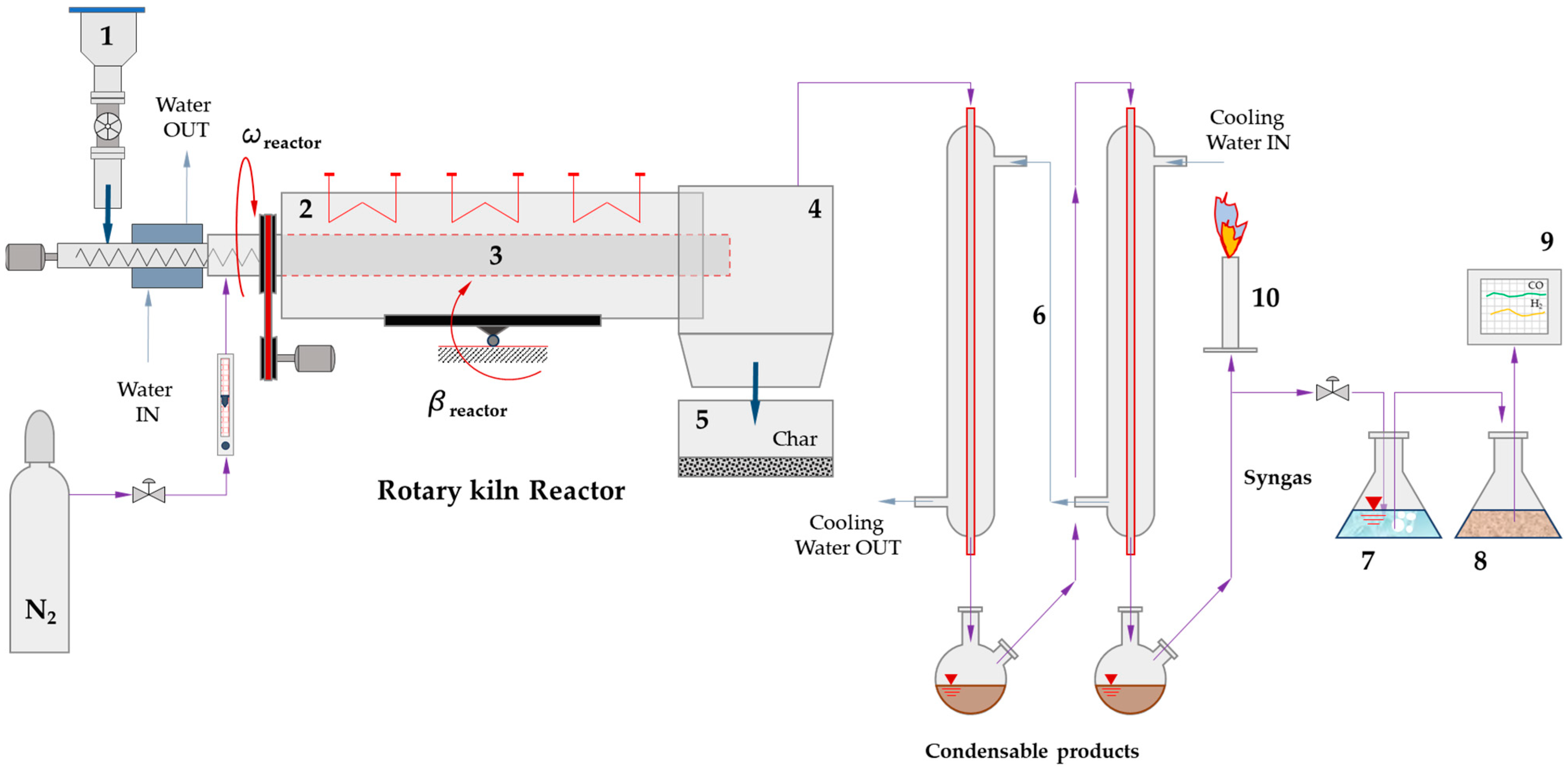 - Freda, C.; Cornacchia, G.; Romanelli, A.; Valerio, V.; Grieco, M. Sewage Sludge Gasification in a Bench Scale Rotary Kiln. Fuel 2018, 212, 88–94. [Google Scholar] [CrossRef]