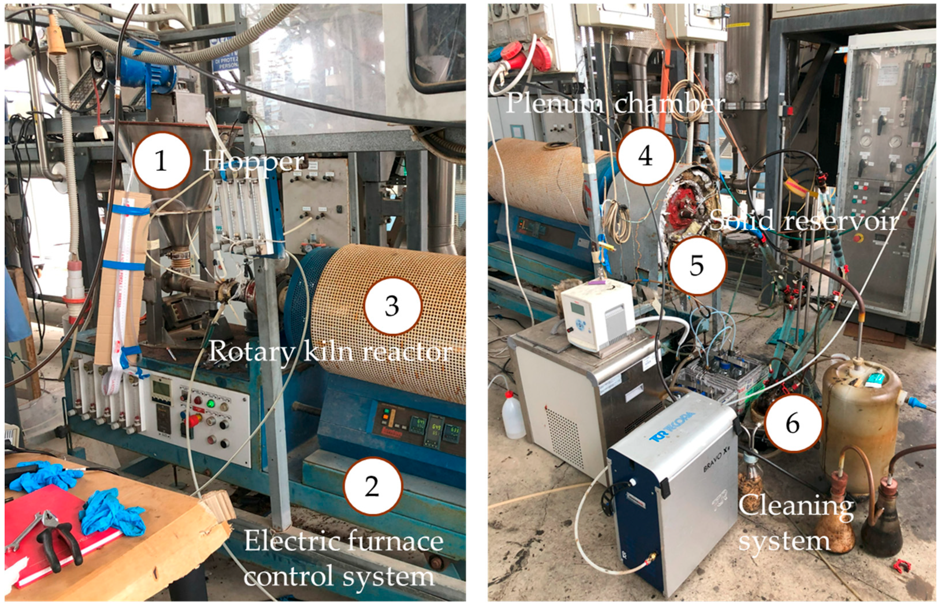 2.3. Bench-Scale Rotary Kiln Facility