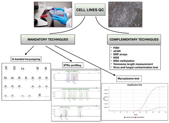 | G-banded karyotyping | Chromosomal metaphases analysis (alterations ≥5–10 Mb in size) | Stability, authentication, and species cross-contamination | Gold standard Mandatory for research and therapeutic use | [17,18,20,22] |
