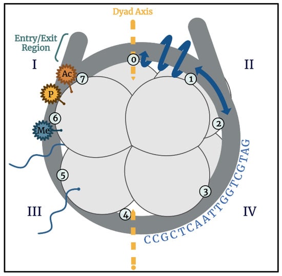 - Zhou, K.; Gaullier, G.; Luger, K. Nucleosome structure and dynamics are coming of age. Proc. Natl. Acad. Sci. USA 2019, 26, 3–13. [Google Scholar] [CrossRef]