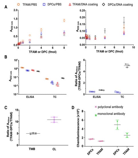 3.4. Optimization of ELISA Conditions for the Detection of TFAM-DPCs