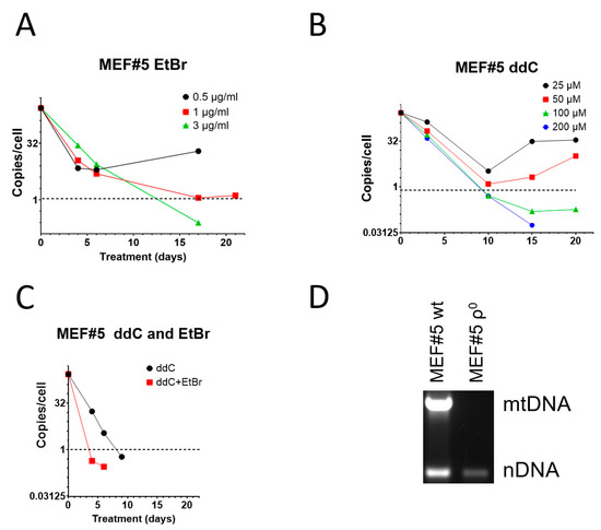 3.1. ddC Is More Effective than EtBr in mtDNA Elimination from Immortalized Mouse Embryonic Fibroblasts