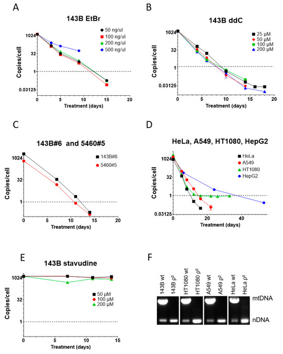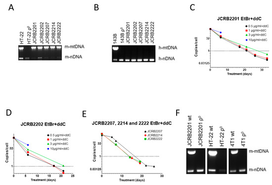 3.2. ddC Is More Effective than EtBr in mtDNA Elimination from Human Cells