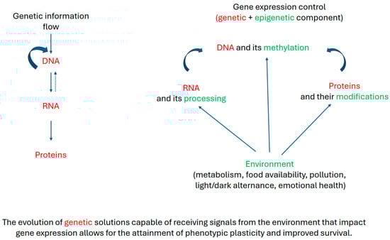 Beyond examining the evolutionary consequences of epigenetics, such as transgenerational inheritance or the intrinsic mutagenic nature of epigenetic modifications, it is essential to consider the evolutionary rationale and selective forces that underpin this regulatory level. Epigenetics acts on the execution of the genetic program rather than directly altering it (Figure 1).