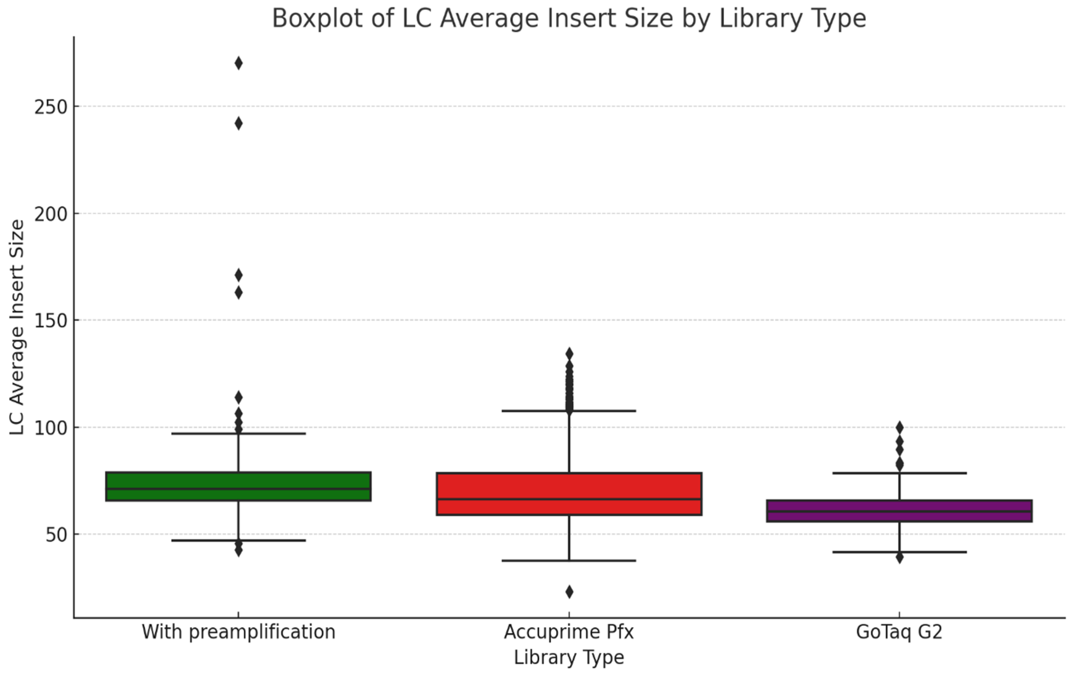 In the last phase of the study, the performance of AccuPrime Pfx and GoTaq G2 polymerases was investigated, focusing on their relative efficiency and cost-effectiveness in aDNA workflows. Both enzymes resulted in a similar endogenous DNA recovery with minor differences in their fragment length distribution. AccuPrime Pfx generated slightly shorter and more consistent fragments, while GoTaq G2 produced slightly larger ones. Given the significant cost difference of these two enzymes, GoTaq G2 offers an economical alternative for routine studies without compromising performance. AccuPrime Pfx remains valuable for projects demanding higher precision where ancient samples are degraded or limited. The choice between the two depends on the project’s budget and specific requirements.