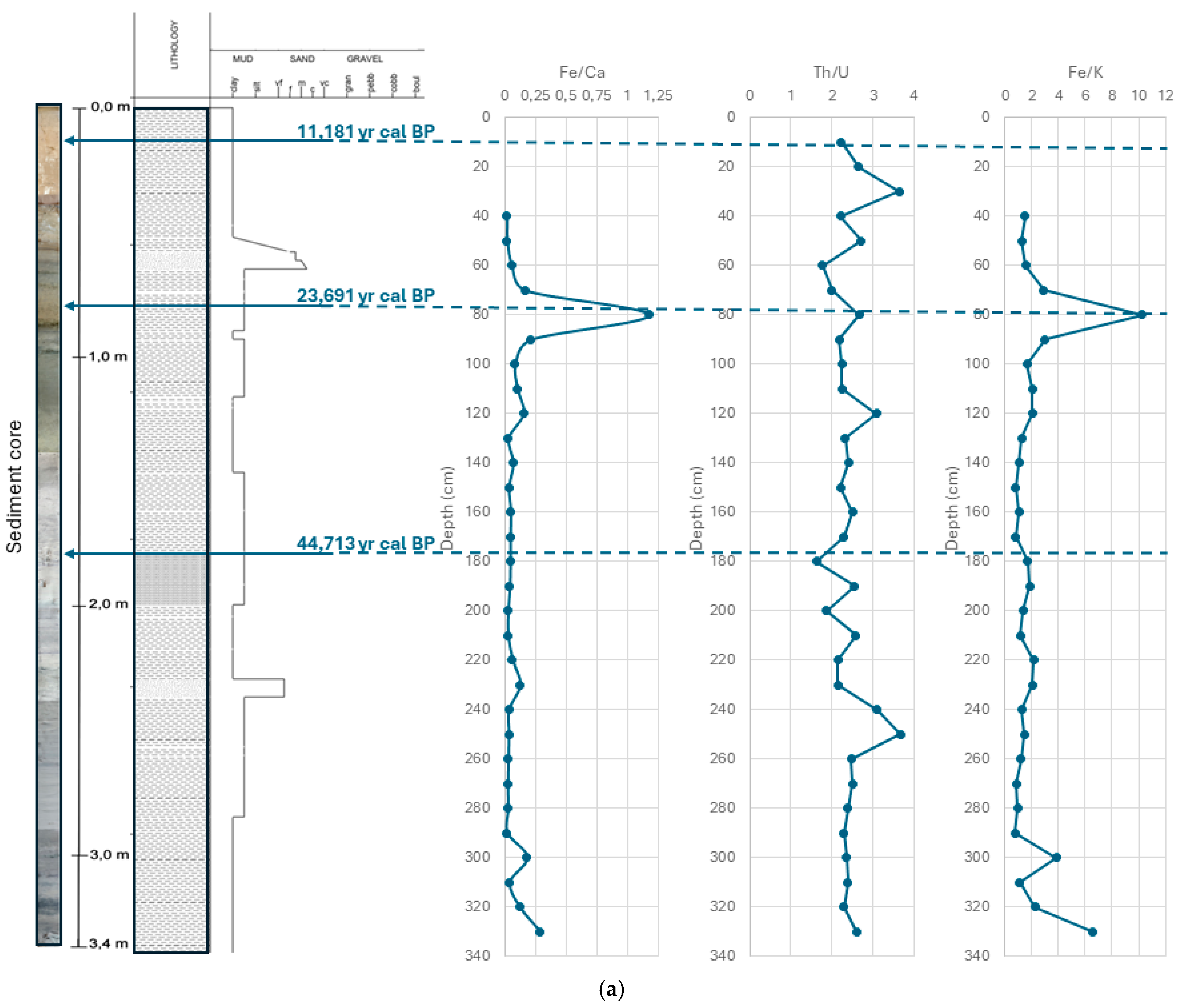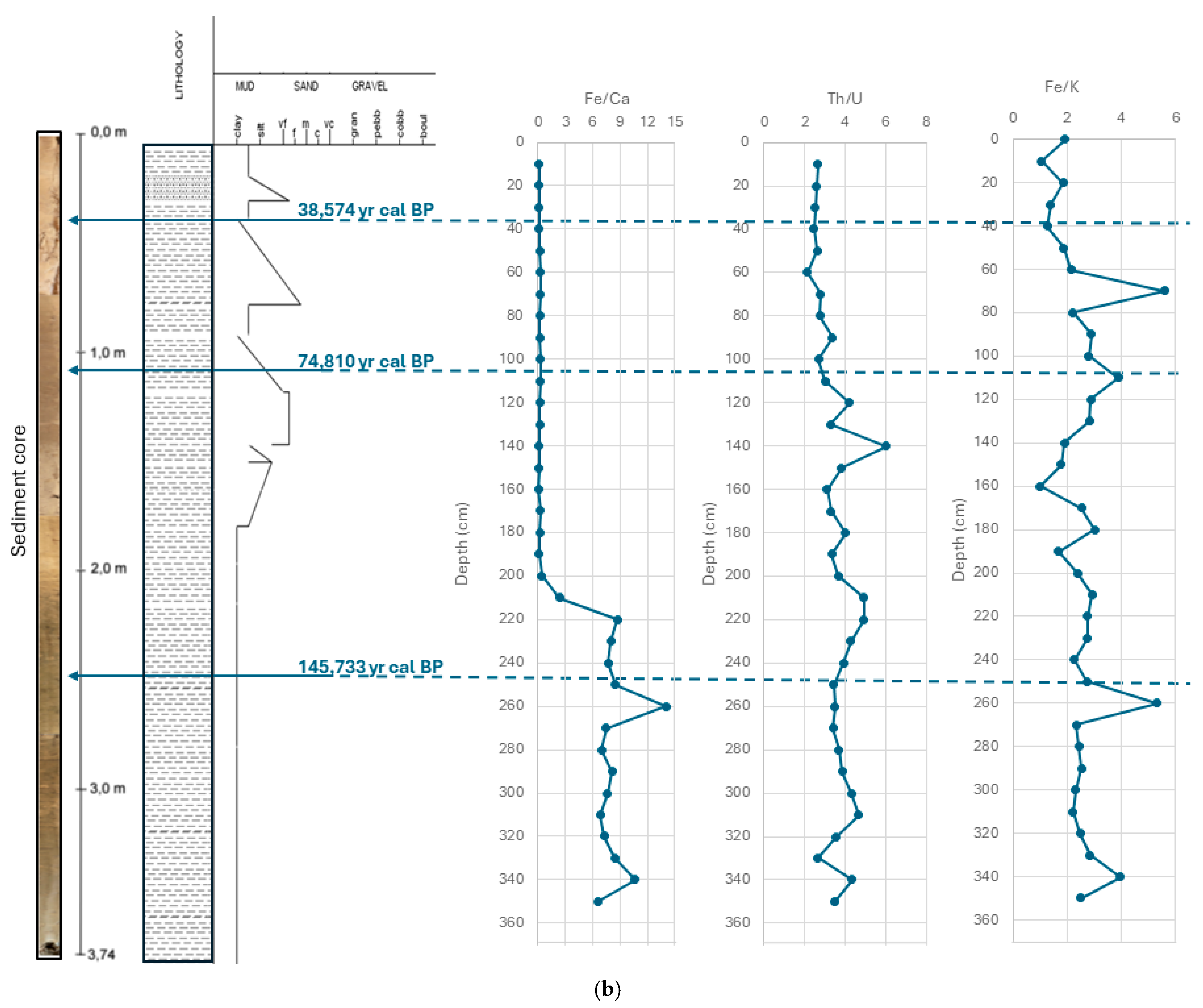 3.1. Sedimentological and Chronological Analysis of the Cores