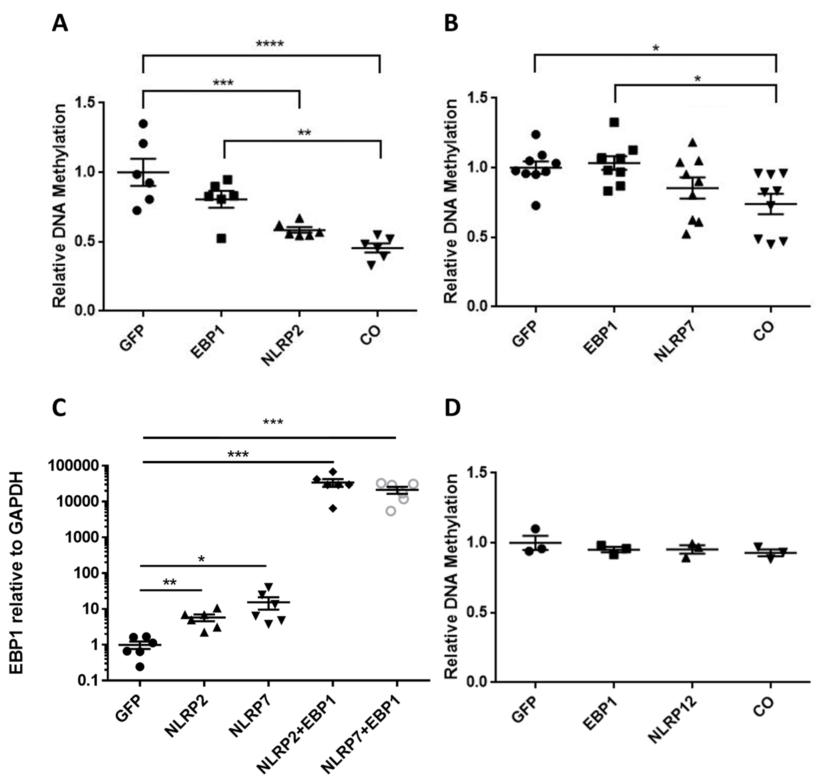 3.3. Combinatorial Effect of NLRP2/7 and EBP1 on DNA Methylation
