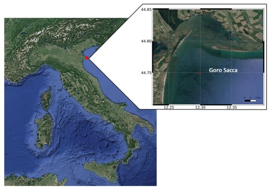 Map of Italy with indication of the sampling site (Goro Sacca-northern Adriatic Sea) with details of the two sampling sites.
