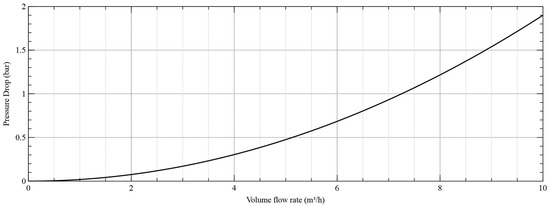 Energy consumption was evaluated using the characteristic pressure drop–volume flow rate diagram of the HC, which is displayed in Figure 5 according to an underflow rate of 0.