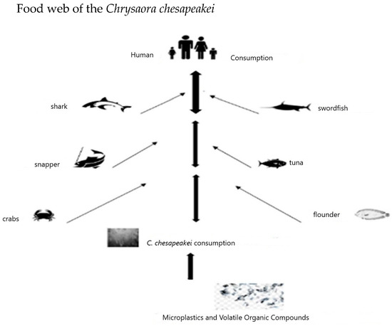 6.1. How Does the Chrysaora chesapeakei Microplastic Content Reach the Human Population from the Chesapeake Bay?