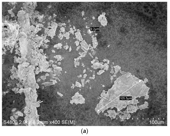 The two analytical methods were validated using ultrapure water samples spiked with in-lab artificially prepared microplastics [44] in known quantities (10–20 MPs per sample and for each polymer). The synthetic MPs used (PP, PE, PVC, PS, PA and PET) were in a size range of from 20–200 µm. The recovery rates were defined after subjecting the spiked samples to the same enzymatic digestion protocol as the industrial samples. The reason why the samples were spiked with 10–20 MPs of each polymer type was in order to be consistent with real samples’ order of magnitude of the detected number of MPs. The MPs were added and counted under an optical microscope. The average recovered particle from these experiments was 50–60 µm in diameter. Additionally, blank samples were prepared with only ultrapure water and without added MPs to account for lab contamination during the process. The process of MPs’ preparation can be found in [44].
