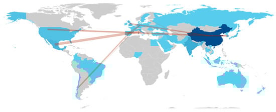 Figure 6d distinguishes between single-country publications (SCPs) and multi-country publications (MCPs), revealing collaboration patterns. China’s high SCP rate indicates strong domestic research capacity, while countries such as Italy and Iran show higher MCP rates, emphasizing international collaboration to leverage diverse expertise. This collaborative trend is particularly valuable in photocatalysis, where interdisciplinary knowledge in materials science, environmental science, and engineering is necessary to develop practical solutions for microplastic degradation. International partnerships can foster innovation through shared resources, enabling more comprehensive research outcomes and optimizing photocatalytic applications across different environmental contexts. The partnerships align with research growth, suggesting that countries with fewer resources benefit significantly from international collaboration in specialized fields, allowing for broader adaptation and implementation of technology solutions [63].