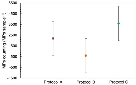 These differences in cost must be considered in relation to the performance of each protocol in terms of MP quantification, detection sensitivity, and operational complexity. From this perspective, protocol A may offer the most balanced compromise between affordability and analytical reliability.