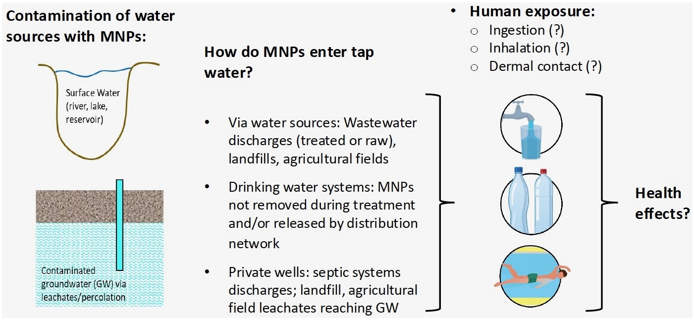 - The pathways MNPs follow to reach drinking water for the design of preventive measures, and